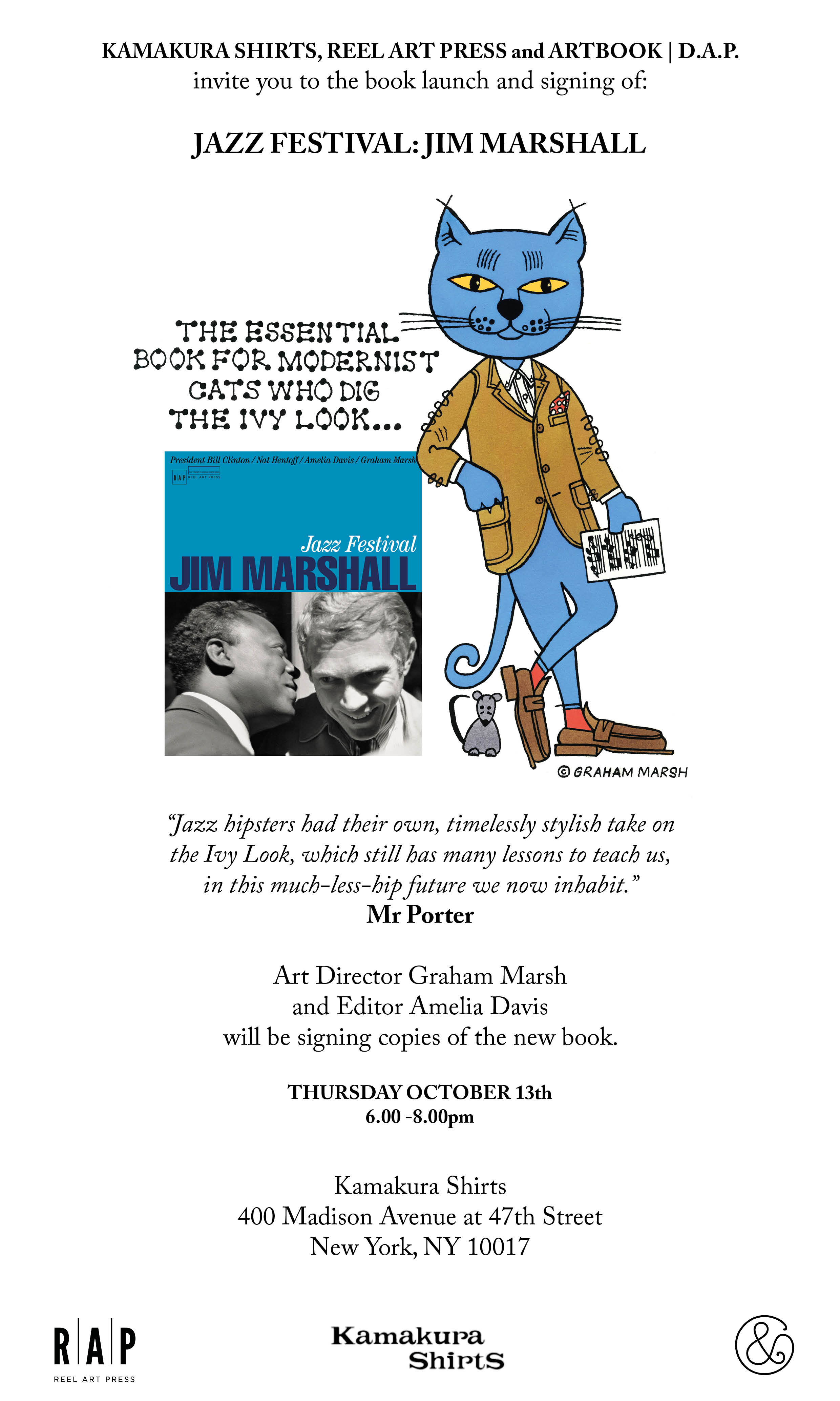 KAMAKURA SHIRTS, REEL ART PRESS and ARTBOOK | D.A.P. invite you to the book launch and signing of: JAZZ FESTIVAL: JIM MARSHALL